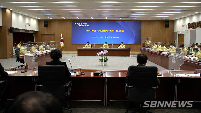 충남도가 지난 12일 도청 대회의실에서 2021 주요업무계획 보고회를 개최했습니다.
