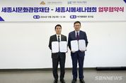 [sbn뉴스-서해신문·서해방송] 세종시문화관광재단은 2일 박연문화관에서 세종시메세나협회과 업무협약을 체결하고 세종시 문화예술 후원 활성화를 위한 협력 관계를 이어가기로 했다고 밝혔다. 이날 협약식은 세종시문화관광재단 박영국 대표이사와 세종시메세나협회 이두식 회장 등 양 기관 관계자들이 참석한 가운데 진행됐다. 이번 업무협약은 양 기관이 2021년 2월 체결한 ‘메세나협회 설립 운영지원 업무협약’에 이은 두 번째 협약으로, 재단이 문화메세나 사업으로 진행하고 있는 여민락콘서트 사업 등에 세종시메세나협회와의 협력을 강화하자는 취지로 추진됐다. 주요 협약내용은 △지역 기업과 연계한 문화예술 활성화 프로그램 개발 및 운영 △협업을 통해 진행되는 사업의 재원 마련 및 홍보마케팅 등이다. 박영국 대표이사는 “설립 4주년을 맞이하고 있는 세종시메세나협회와 발맞추어 재단의 문화메세나 사업을 확대해나갈 수 있기를 기대한다”고 말했다. 이두식 회장은 “이번 협약을 통해 세종시문화관광재단과의 협력을 강화하여 기업들이 지역 문화예술 발전에 기여할 수 있는 기회를 더욱 많이 만들 수 있기를 바란다”고 말했다.