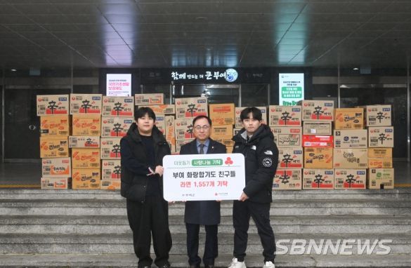 [sbn뉴스-서해신문·서해방송] 화랑합기도 친구들은 지난 28일 어려운 이웃들을 위해 라면 1,557개를 부여군에 기탁했다. 화랑합기도 친구들은 올해로 7년째 손수 모은 라면을 기부하고 있다. 이날 기탁된 라면은 부여군 16개 읍·면에 고루 배분되어 어려운 이웃들에게 전달될 예정이다.