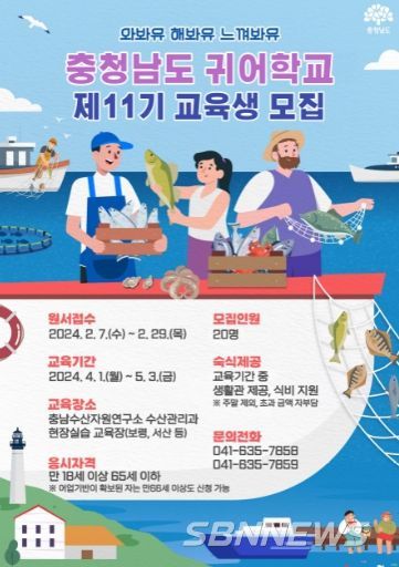 [sbn뉴스-서해신문·서해방송] 충남도 수산자원연구소는 오는 29일까지 제11기 귀어학교 교육생 20명을 모집한다고 15일 밝혔다.