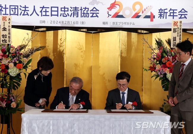 일본을 방문 중인 김태흠 지사는 16일 일본 게이오 플라자 호텔에서 류기환 재일충청협회 회장과 ‘탄소중립 실현을 위한 홍예공원 충남도민참여숲 조성 헌수 성금 기부 협약’을 체결했다.