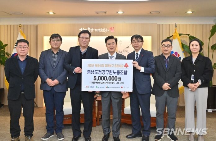 [sbn뉴스-서해신문·서해방송] 충남도는 22일 도청 접견실에서 충남도청공무원노동조합으로부터 서천특화시장 화재 피해 복구 지원 성금 500만 원을 전달받았다.
