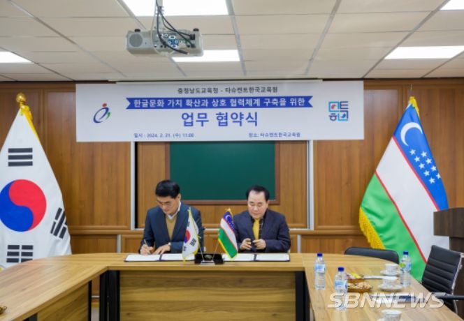 [sbn뉴스-서해신문·서해방송] 충남교육청은 19일 우즈베키스탄 유아일반교육부와의 업무협약에 이어 21일 우즈베키스탄 타슈켄트한국교육원과 충남교육청교육과정평가정보원에서 개발한 한글해득 프로그램 '누리한글'을 이용한 재외국민의 한글해득을 지원하는 업무협약을 체결했다고 밝혔다.