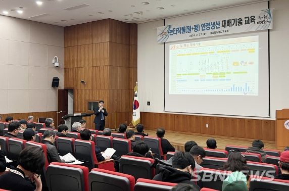 [sbn뉴스-서해신문·서해방송] 충남도 농업기술원은 27일 기술원 중강의실에서 농림축산식품부 지정 전문생산단지 등 재배농업인 100여 명이 참석한 가운데, 논 타작물(밀+콩) 안정 생산을 위한 재배기술 교육을 추진했다.
