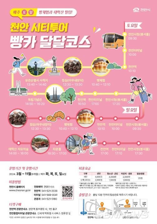 [sbn뉴스-서해신문·서해방송] 천안시는 관광코스를 새롭게 구성한 천안시티투어 버스를 운행한다고 12일 밝혔다.