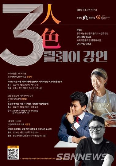 [sbn뉴스-서해신문·서해방송] 공주시는 공주시 농촌신활력플러스사업으로 진행하는 ‘공동체경제 아카데미 명사특강’을 3회에 걸쳐 개최한다고 22일 밝혔다.