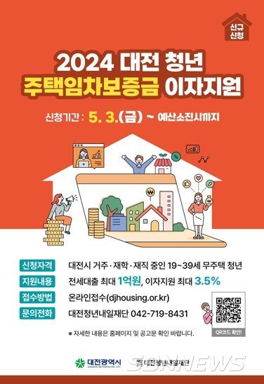[sbn뉴스-서해신문·서해방송] 대전시와 (재)대전청년내일재단은 3일부터 대전시 청년들에게 전세자금 대출이자를 지원하여 안정적 주거생활을 돕는 ‘청년 주택임차보증금 이자지원사업’ 대상자를 모집한다.