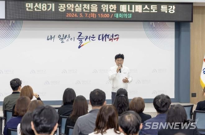 [sbn뉴스-서해신문·서해방송] 대전 대덕구는 7일 구청 대회의실에서 민선 8기 공약을 체계적이고 성공적으로 실천하기 위한 매니페스토 특강을 개최했다.