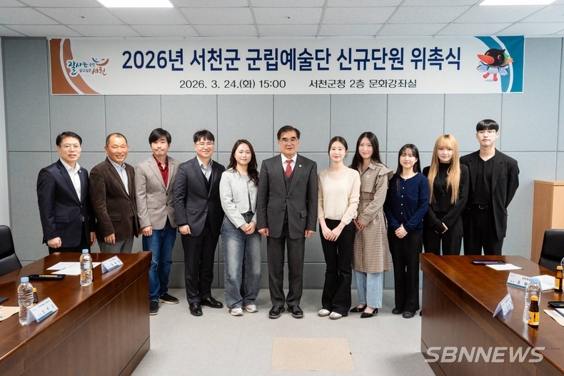 서천군은 지역 문화예술 진흥과 군민의 문화 향유 기회 확대를 위해 지난 24일 서천군청 2층 문화강좌실에서 군립예술단 단원과 관계자 등이 참석한 가운데 2026년 군립예술단 신규단원 위촉식을 개최했다.