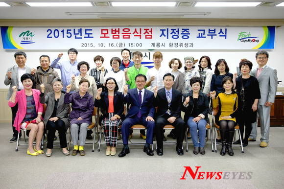 [계룡=뉴스아이즈] 이은정 기자 = 충남 계룡시(시장 최홍묵)는 16일 시청 상황실에서 음식문화개선운동 추진위원회 심의위원회를 거쳐 일반음식점 21개소를 2015년 모범음식점으로 지정하고 지정증 교부식을 가졌다.