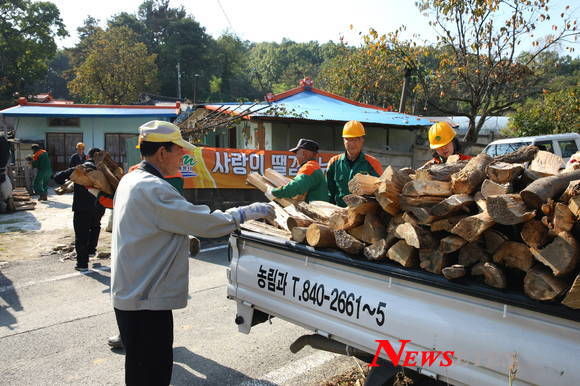 이날 행사는 계속되는 경기침체와 고유가로 추운 겨울을 보내야 하는 독거노인 및 저소득층 10세대에 땔감(30㎥)을 전달하기 위해 마련됐다.