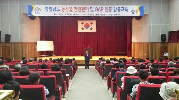 충남도는 29일 충남농업기술원 대강당에서 로컬푸드 생산농가 및 GAP 인증 희망농가 등 300여 명을 대상으로 ‘농산물 안전관리 및 GAP 인증 합동교육’을 실시했다.