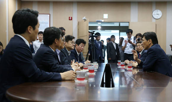 안희정 지사는 7일 당진시청 접견실에서 더불어민주당 산업통상자원위원회 위원들을 만나 6일 발표한 도의 대정부 5대 제안을 설명하고 법제화 등 적극적인 협조를 요청했다.