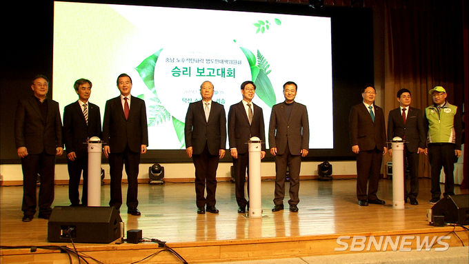 한편, 이 자리에는 양 지사를 비롯해 유병국 도의장, 범도민대책위 회원, 전문가, 기업인 관계 공무원 등 400여 명이 참석한 가운데 강연, 감사패 수여, 활동 경과보고 등의 순으로 진행됐습니다.