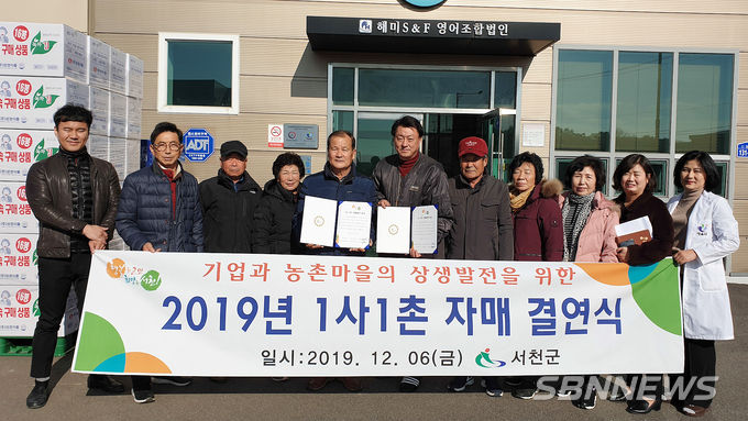 이번에 체결한 1사 1촌 자매결연 대상은 서면김가공특화단지 내 영신식품과 서면 공암마을, 해미 S&F영어조합법인과 서면 월리마을이 참여했습니다.