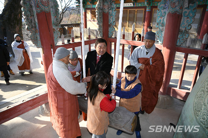 이어 같은 날 오전 11시 30분에는 수덕사 범종각에서 새해를 알리고 한 해의 안녕을 기원하는 타종식을 진행했다.