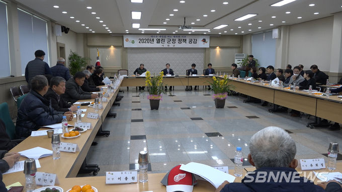 각 읍‧면 소속 공무원과 이장이 함께 진행된 정책토론회에서는 2019년도 군정성과 공유 및 각 읍‧면의 현안인 축사 악취 문제, 태양광 시설 증가에 따른 주민 애로 청취 및 대책 마련, 도로변 가로수 선정 등 논의가 진행됐다.
