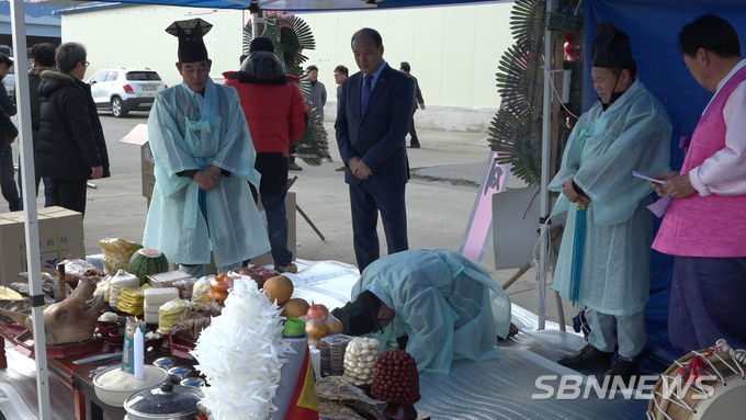 [sbn뉴스=서천] 신혜지 기자 = 지난달 31일, 충남 서천군 서면 홍원항위판장에서 풍어와 어로의 안전을 기원하는 풍어제가 열렸다.