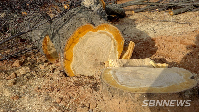 나무가 병충해가 있었던 것도 아니고 물론 공사에 편의성도 있고 예산을 절감한다는 것도 있지만 그래도 자연이 우선시가 돼야지 않겠나. 나무의 가치를 판단했을 때는 한 그루의 이설비가 이렇게 자연을 훼손하면서까지 이설비가 큰 돈이었나 (싶네요)