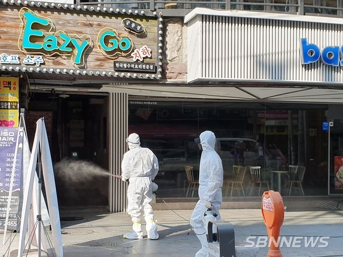 [sbn뉴스=대전] 권주영 기자 = 대전 유성구가 지난 1일 오후 궁동에 대한 집중적인 방역을 실시했다.