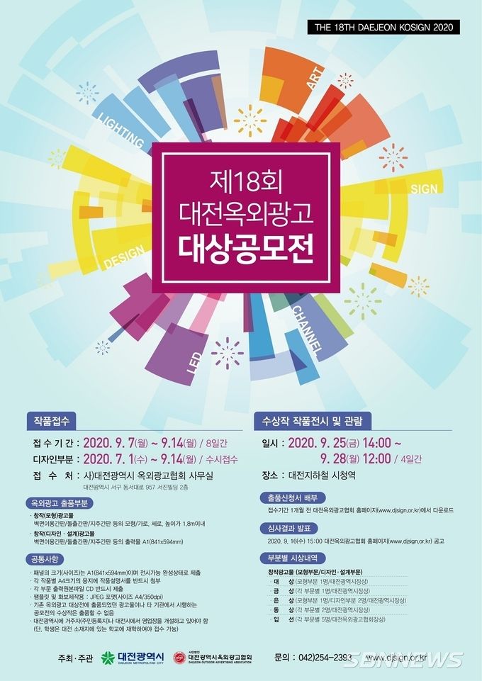 응모작은 9월 7일부터 9월 14일까지 8일간 ㈔대전광역시옥외광고협회(대전시 서구 동서대로 957, 2층)로 방문 제출하면 된다.