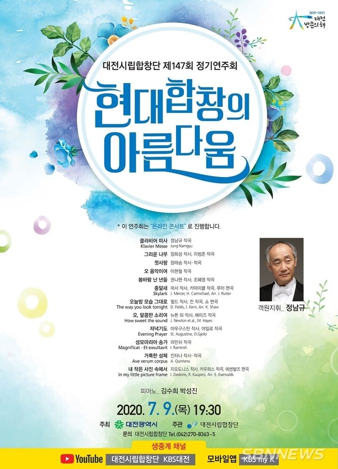 연주회는 유튜브 대전시립합창단, KBS대전 채널과 KBS 모바일 앱 my K에 접속하면 누구나 실시간으로 감상할 수 있다.