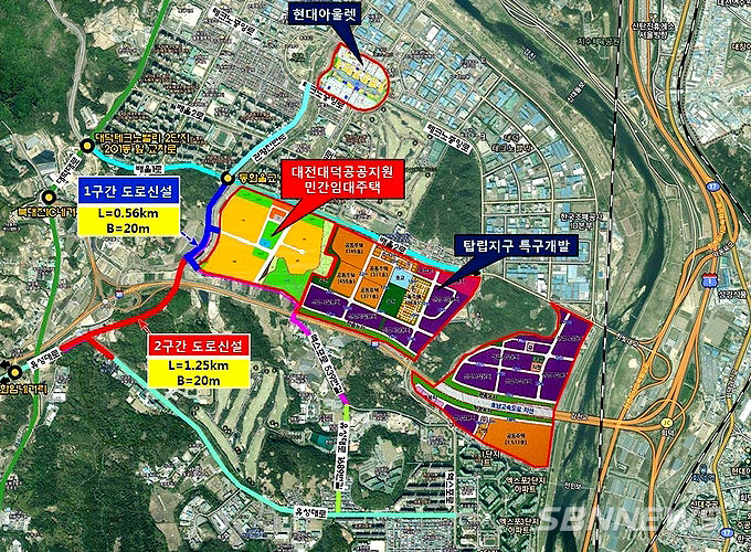 2구간(1.25㎞)은 이번에 체결한 협약에 따라 대전시가 대전용산개발(주)로부터 사업비의 50%(약 211억 원)를 납부받아 2026년까지 개설하게 된다.