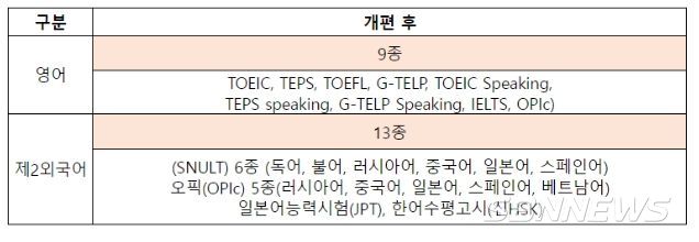 영어와 제 2 외국어 총 22종의 어학시험으로 확대!