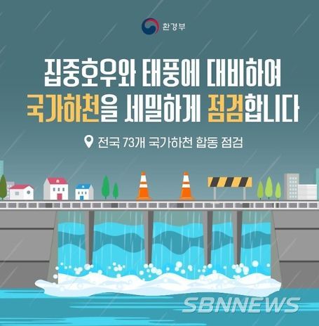 8월 이후 발생 가능한 집중호우와 태풍 등에 대비하여 전국 73개 국가하천의 제방 등 하천시설 취약요소에 대해 전문가 100여 명과 함께 국가, 지자체 합동으로 점검을 시행합니다.
