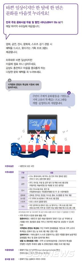 ※무료입장 여부 및 수혜 할인 폭 등은 문화시설별 차이가 있을 수 있음(방문 전 확인)