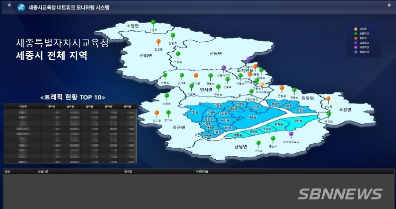 세종시교육원은 기능 개선된 통합관제시스템을 활용하여 이용기관의 네트워크 상태와 인터넷 사용량(트래픽) 현황을 시각적으로 표현한 종합상황판을 실시간으로 확인하여 안정적인 인터넷서비스를 제공할 예정이다.