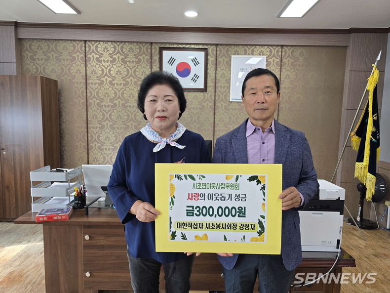 시초면 적십자봉사회 강정자 회장이 지난 15일 시초면이웃사랑후원회에 이웃돕기 성금 30만 원을 기탁했다.
