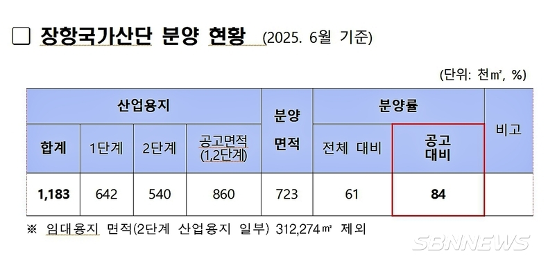 장항국가생태산업단지 1단계는 분양률 84%이나 실제 공장 가동률은 약 33%에 불과하며, 2단계는 2025년 12월 준공 예정으로 전체 산단 가동률은 아직 초기 단계에 머물러 있다.
