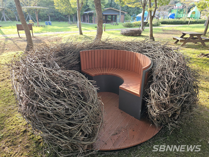 새의 보금자리를 형상화한 이 쉼터는 관람객이 직접 앉아 휴식을 취하거나 사진을 찍을 수 있는 포토존으로 활용된다.