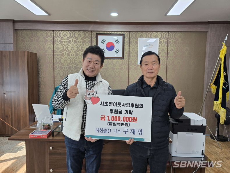 시초면 출신 가수 구재영 씨가 지역의 취약계층을 돕기 위해 시초면이웃사랑후원회에 후원금 100만원을 기탁했다.