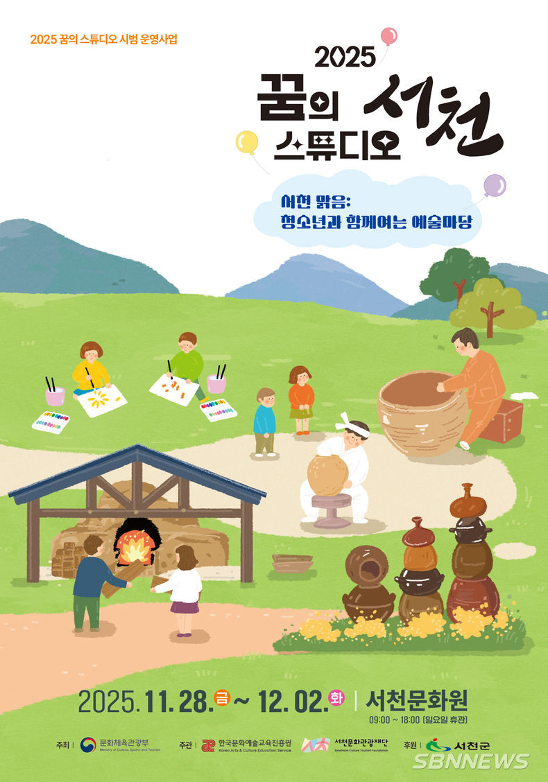 (재)서천문화관광재단은 오는 28일부터 다음 달 2일까지 서천문화원 전시실에서 ‘2025 꿈의 스튜디오 서천’, ‘서천 맑음: 청소년과 함께 여는 예술 마당’전시회를 개최한다.