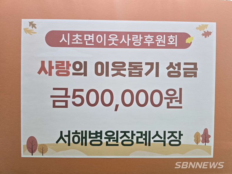 서해병원장례식장은 지역의 어려운 이웃을 돕기 위해 시초면이웃사랑후원회에 성금 50만원을 기탁했다.