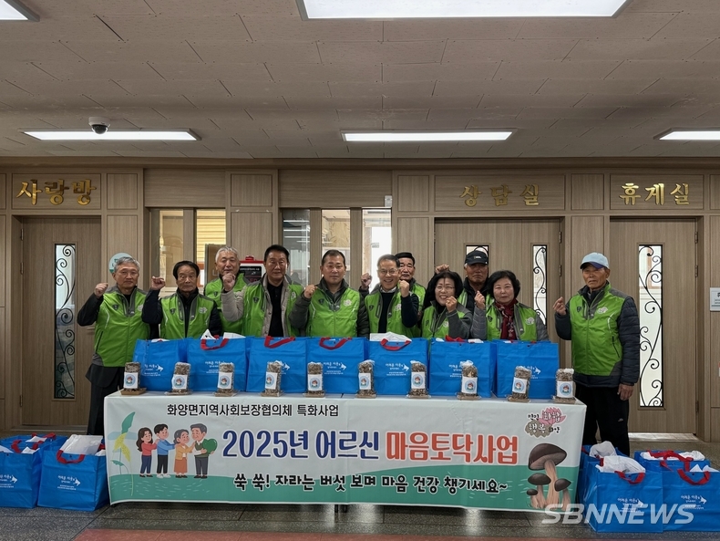 화양면지역사회보장협의체는 지난 11일 상반기에 이어 독거어르신에게 표고버섯 키트를 전달하며 안부를 확인하는 ‘마음토닥사업’을 진행했다.
