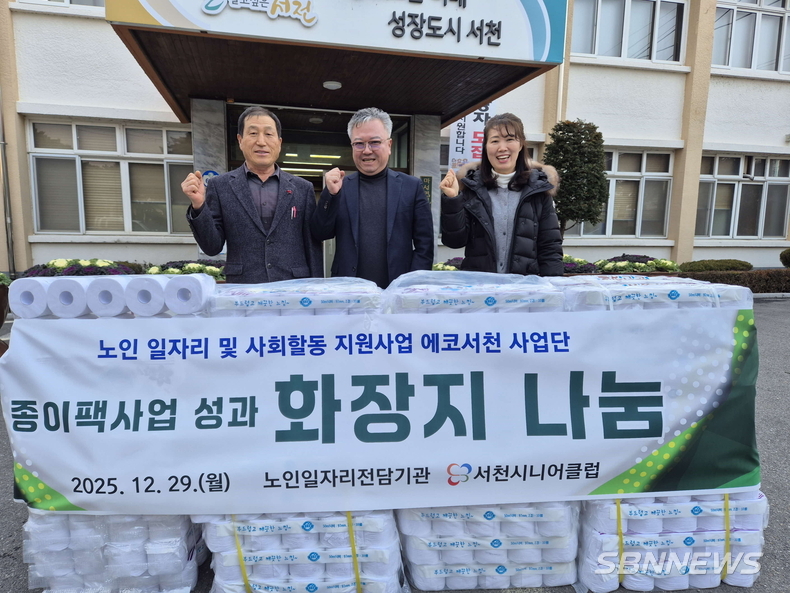 이번에 전달된 화장지는 서천시니어클럽 노인일자리 공익형 사업인 ‘우리동네 종이팩 자원순환단’ 활동을 통해 마련됐다.