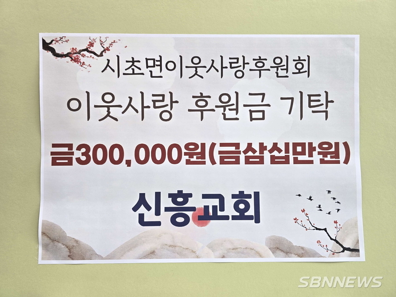 시초면 신흥교회는 시초면이웃사랑후원회에 이웃사랑을 실천하고자 성금 30만원을 기탁했다.