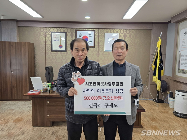 시초면 신곡리에 거주하는 구재노 씨가 어려운 이웃을 위해 써달라며 성금 50만 원을 시초면이웃사랑후원회에 기탁했다.