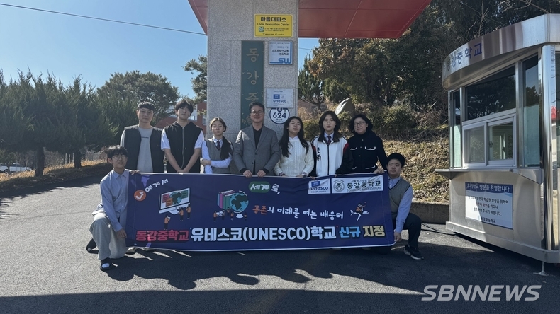 동강중학교(교장 김정래)는 지난 3일 학교 교문에서 유네스코 학교네트워크(ASPnet) 회원학교 인증 현판식을 열고, 지속가능발전교육과 세계시민교육의 가치를 학교 교육과정과 학교문화 속에서 본격적으로 실천해 나갈 것을 밝혔다.