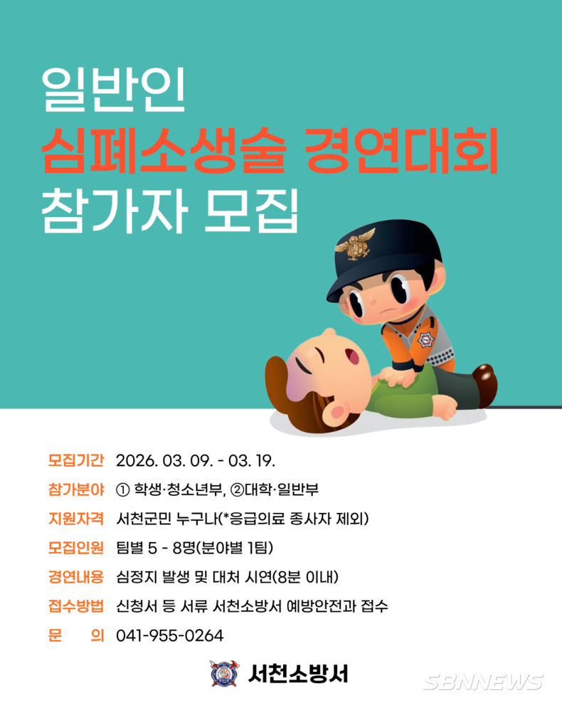 소방서는 지난 11일, 군민들의 초기 응급처치 역량을 극대화하고 생명 존중의 숭고한 가치를 널리 확산하기 위해 ‘2026년 일반인 심폐소생술 경연대회’ 참가팀을 오는 19일까지 모집한다고 밝혔다.