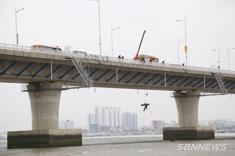 훈련에서는 갯벌 구조 방법과 대응 장비 숙달을 위한 이론교육을 바탕으로, 현장에서 크레인을 활용한 인명구조 기법과 갯벌 고립사고 대응훈련 등 실제 상황을 가정한 실전형 구조훈련이 진행됐다.