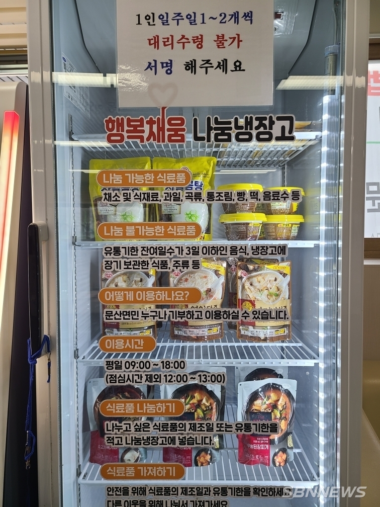 지난 3일부터 본격 운영에 들어간 행복나눔냉장고는 지역 주민들의 기부로 모인 식품과 생필품을 누구나 자유롭게 이용할 수 있도록 마련된 문산면 지역사회보장협의체의 특화사업이다.