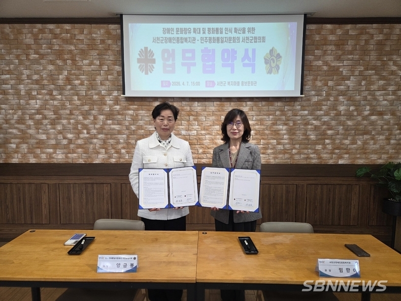 민주평화통일자문회의 서천군협의회(회장 양금봉)와 서천군장애인종합복지관(관장 임향이)은 지난 7일 서천군복지마을 홍보문화관에서 주요 관계자들이 참석한 가운데 상호 협력을 위한 업무협약을 했다.