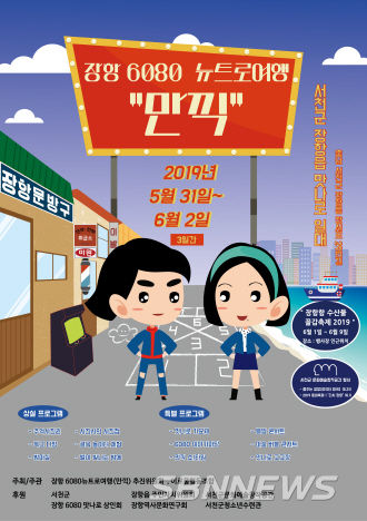 [sbn뉴스=서천] 나영찬 기자 = 충남 서천군은 ‘2019 장항 6080 뉴트로 여행 만끽’ 축제가 오는 31일부터 6월 2일까지 장항 6080 맛나로 골목에서 개최된다고 7일 밝혔다.