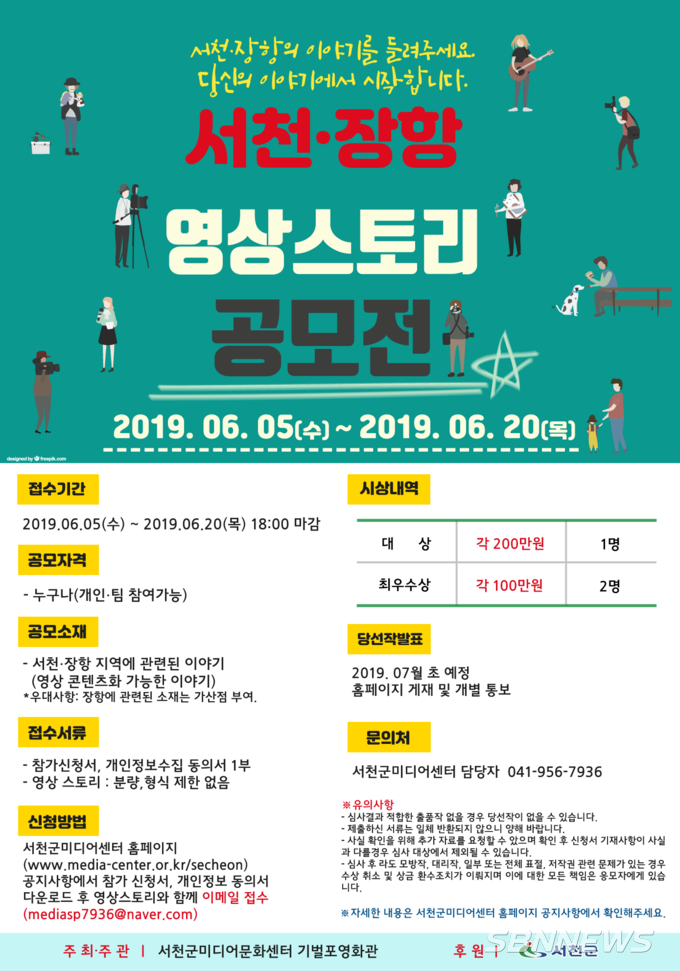 [sbn뉴스=서천] 나영찬 기자 = 충남 서천군미디어문화센터는 5일부터 오는 20일까지 '서천·장항 영상스토리 공모전'을 개최한다.