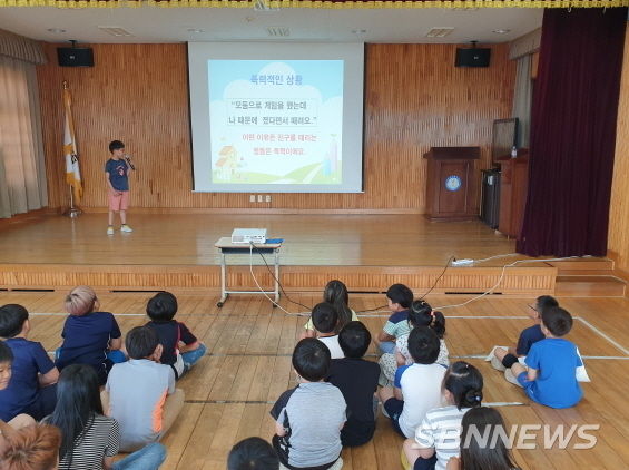 [sbn뉴스=서천] 신혜지 기자 = 충남 서천 송석초등학교(교장 김윤희)는 지난달 28일 학교폭력을 주제로 각 학년 학생들이 자유롭게 생각을 발표해보는 행사를 가졌다.