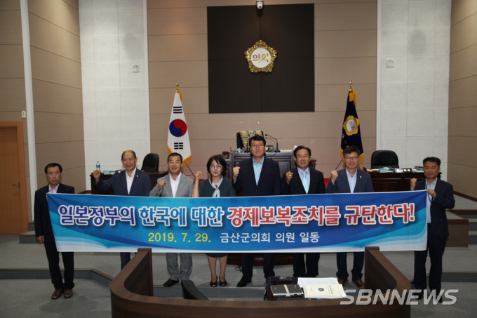 [sbn뉴스=금산] 김호진 기자 = 충남 금산군의회(의장 김종학)는 지난 29일 열린 제260회 임시회 제1차 본회의에서 한일관계를 훼손하는 일본정부의 불합리한 경제보복 조치와 관련한 ‘일본 정부의 경제보복에 대한 규탄’ 결의문을 채택했다.